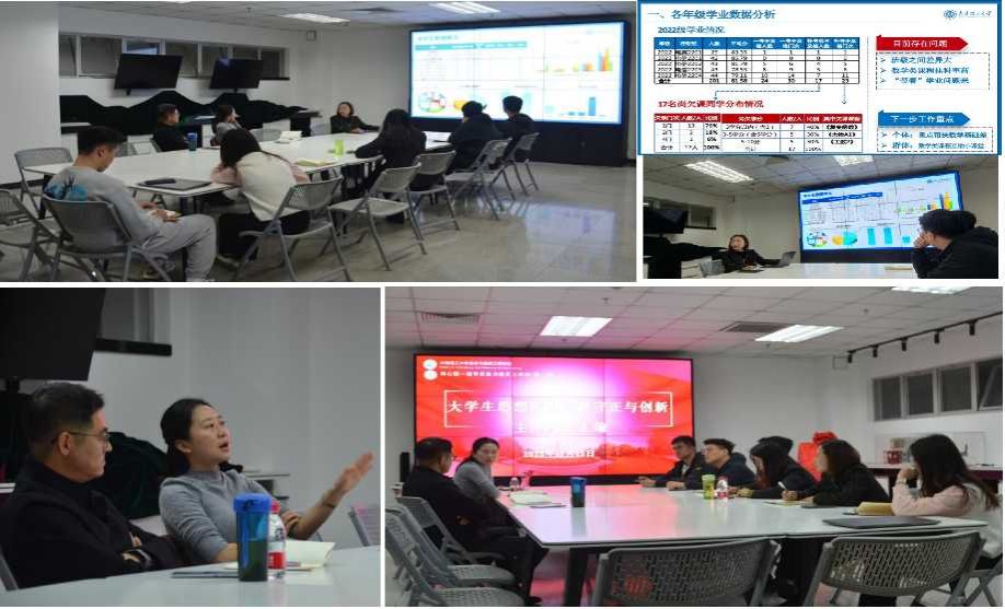随后,王瑜老师与学办全体同仁专题调研了公司学业情况,听取了公司本硕各年级学风数据分析,与学办全体辅导员一道梳理学业问题、有的放矢的聚焦下一步工作重点,并指出辅导员要牢记社会主义办大学的初心使命、明确辅导员的定位与职责、牢牢把握文化是魂、力争做到精准思政,并指出辅导员要强化积极合作、经验共通,相互学习促进,以推动公司员工工作队伍的建设和发展。