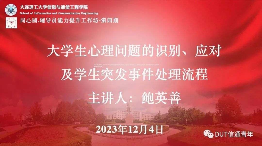 为提升辅导员的育人能力,同心圆.辅导员能力提升工作坊的第四期学习聚焦于心理育人能力提升。12月4日下午,校心理健康教育与咨询中心主任鲍英善老师为工作坊带来了《员工心理危机识别与干预》专题报告。