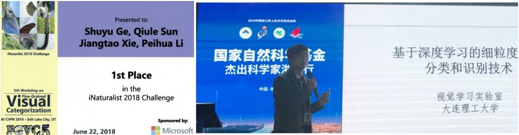 基于所提出的深度卷积神经网络模型, 课题组参加了CVPR大规模自然物种识别挑战赛, 在来自世界各地的科研院 所/高科技公司的59支队伍中取得第一名, 获得国内外学者和工业界的广泛关注。课题组应邀参加国家自然科学 基金委主办的“国家自然科学基金杰出科学家浙江行”活动, 论文作者、博士研究生谢江涛在路演中向与会科研人 员和企业家对该项研究成果进行了专门宣讲和介绍。作为计算机视觉领域的基础和核心技术, 课题组所提出的模 型在商品识别、自主/无人驾驶车辆、无人值守超市和基于视觉的智慧城市建设中具有广泛的应用前景。